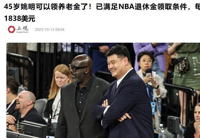 上观新闻:(45岁姚明可以领养老金了!已满足NBA退休金领取条件,每月1838美元2025.10.13)