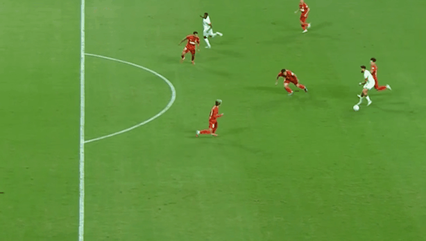 下半场回来不到一分钟,梅州客家反击快速形成三打四,罗德里戈禁区推射,再度被门将扑住。两队明显加快了节奏,内内禁区被推倒,裁判并没有任何表示。梅州客家围绕着对手的左边路,展开连续的攻势。