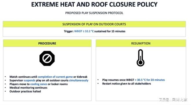ATP 董事会已批准自 2026 赛季起实施新的高温规则。主要条款如下: