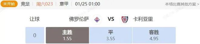 数据方面,佛罗伦萨做出了3个档次的让步,力度较足。综合分析各项因素,本场比赛我看好佛罗伦萨能够主场取胜。