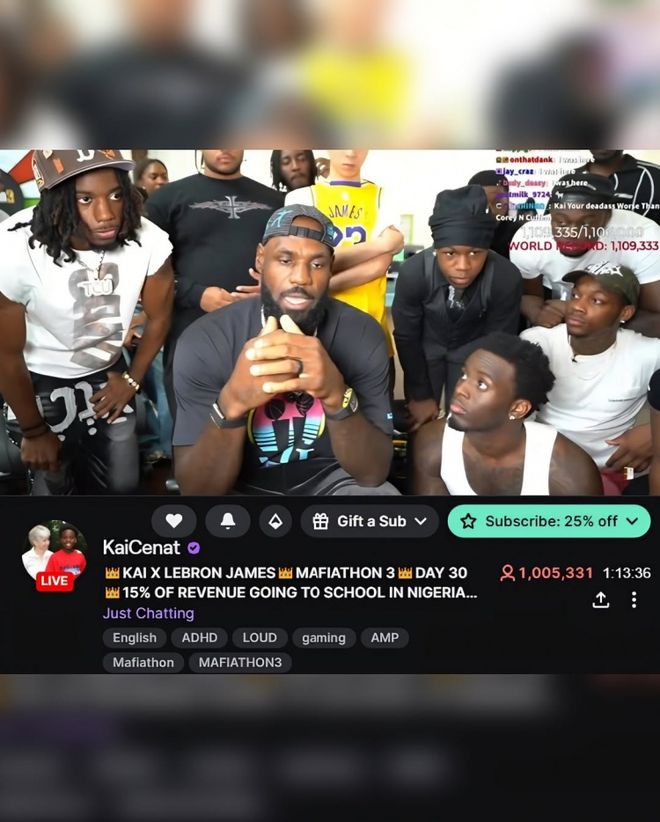 当湖人球星詹姆斯出现在网红凯 - 塞纳特(Kai Cenat)的直播间时,整个直播平台瞬间被点燃。