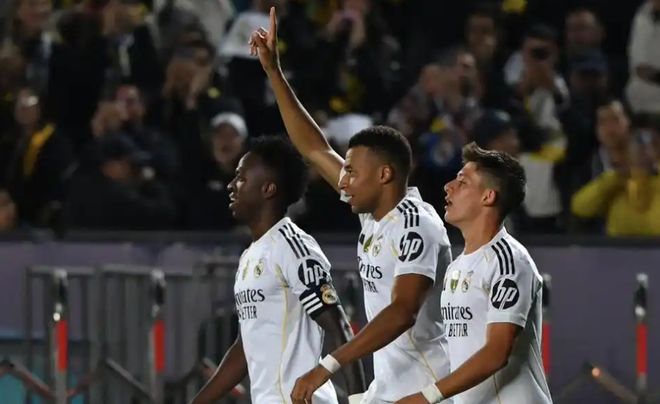 长途飞行不耽误!皇马50横扫欧冠新军,姆巴佩帽子轻松又写意