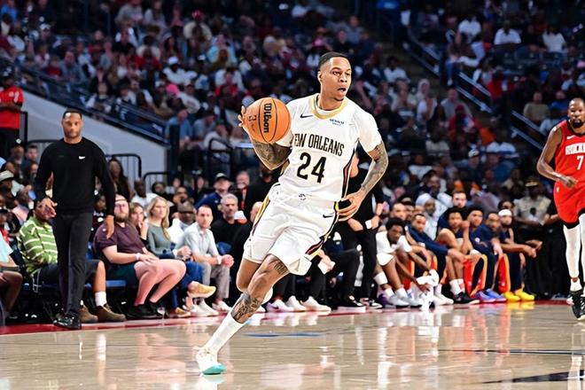 本场比赛中,鹈鹕的替补后场球员乔丹-霍金斯(Jordan Hawkins)的表现也算是有了一些回暖。霍金斯全场出场18分31秒,投篮7中3,三分线外4中1,罚球6中6,得到了13分2篮板1抢断的数据,还有2次犯规,正负值则是达到了全队最高的+19。霍金斯在进攻端的效率虽然一般,但是他还是展现出了不错的得分能力,他也是制造了对手的多次犯规并且拿到了不少的分数。霍金斯虽然之前一直不被认为是一名可靠的防守者,但是至少他在本场比赛中也是展现出了不俗的个人防守能力,他的防守积极性也是值得肯定的。霍金斯在攻防两端都起到了决定性的作用,他的努力也是帮助球队在比赛最后一节追近了比分,并且险些帮助球队扭转局面。