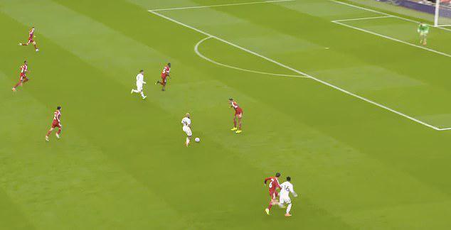 利物浦防线漏洞百出,布鲁诺-费尔南德斯在禁区内完成了一次迟来的跑位,接应传中射门,可惜未能得分。