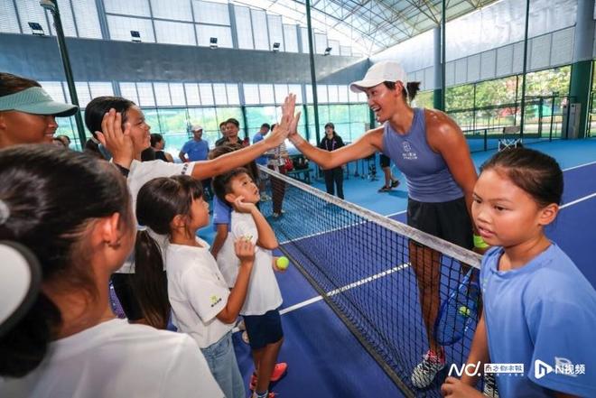 南都讯 记者汪雅云 2025年广州女子网球公开赛本周在南沙举行,开赛前夕,2023年赛会冠军王曦雨来到赛事举办地南沙国际网球中心,参加中国体育信息之2025年广网青少年活动,与南沙区青少年网球队、钧泰国际网球学院的小球员们一起打球互动。