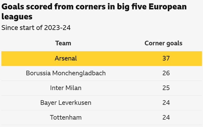 他的目标是带领阿森纳赢得英超冠军,而现在他又多了一件制胜法宝。他的球队天赋异禀,既能在开放式进攻中击败对手、保持零封,还能频繁通过定位球得分。
