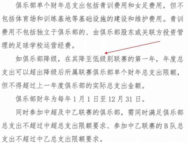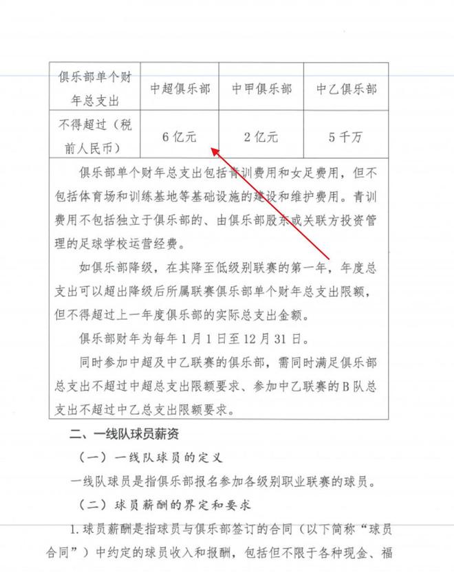 先来看一下大家比较关心的两个点:1,中足联规定:中超俱乐部在“单个财年”的投资上限是6亿元人民,中甲俱乐部上限是2亿元人人民币,乙级俱乐部的上限是5000万人民币。