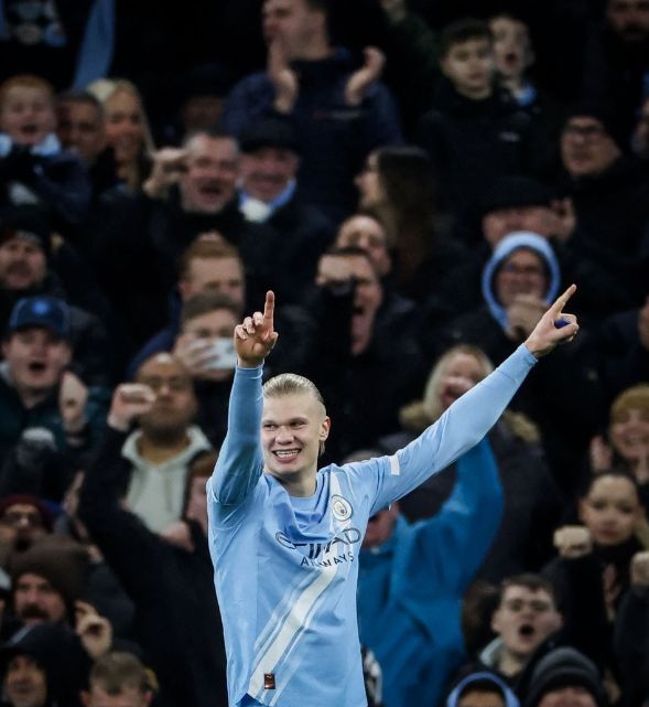 逃过一劫的曼城,在第69分钟彻底终结了胜负的悬念,完成一次成功防守后,蓝月军团迅速推反击,哈兰德禁区内抽射上演梅开二度,将全场比分定格为了3-0,职业生涯114场英超比赛,哈兰德已经打进了104球,超越C罗追平了切尔西名宿德罗巴(254场104球),升至历史第32位。